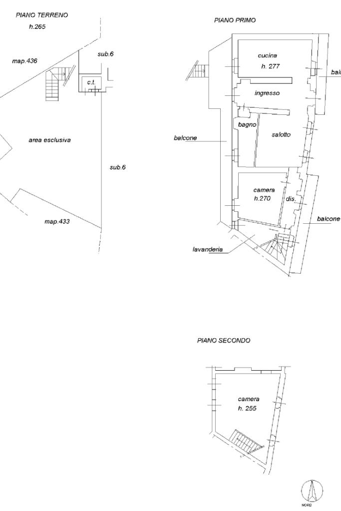 In centro paese, appartamento situato al piano primo di una casa semindipendente ristrutturato nel 2004 e disposto su due livelli. L’accesso si ha mediante una scala esterna che conduce al balcone situato di fronte alla casa. L’ingresso dà su un locale disimpegno che divide la zona giorno in due locali separati. Quest’ultima è composta da una cucina abitabile e da un soggiorno. Invece, la zona notte è composta da una camera da letto ed un bagno con vasca e finestra. Completa il piano un locale utilizzato come sgombero. Sono presenti due balconi. Invece, il piano secondo accessibile mediante una scala interna ospita un locale mansardato. Il riscaldamento è autonomo a metano ed è presente la canna fumaria. Gli infissi sono dotati di doppi vetri. Il tetto è stato rifatto ed anche impianto elettrico ed idraulico. Completa la proprietà un cortile ad uso esclusivo.