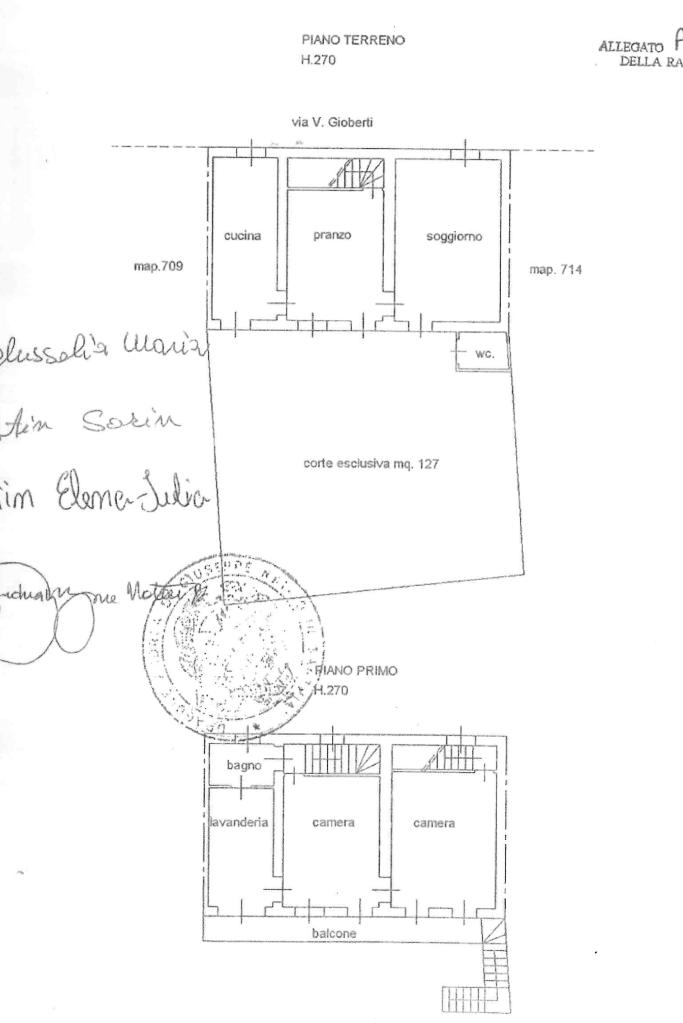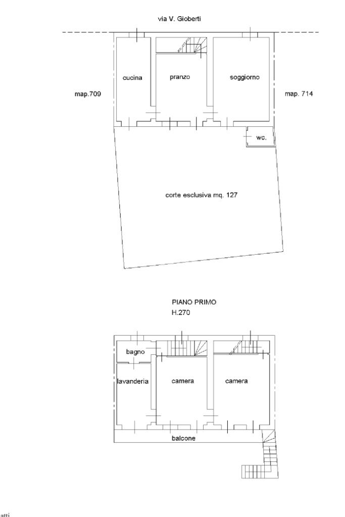 In centro paese, casa semindipendente disposta su due livelli. Il piano terra è composto da cucina abitabile, separata dal soggiorno. Completa il piano una camera da letto e il bagno con vasca e finestra. Invece, il piano primo raggiungibile mediante scala esterna ed interna, è costituito dalla zona notte. Quest’ultima conta di due camere da letto, un soggiorno ed un bagno. Inoltre, è presente un balcone che si estende lungo la facciata della casa. Il riscaldamento è autonomo a metano mediante caldaia a condensazione sostituita circa 15 anni fa ed è presente anche la canna fumaria. Gli infissi sono in alluminio e alcuni con vetri doppi. A corredo della proprietà vi è un’area cortilizia, in parte utilizzata ad orto per una metratura di 127 mq circa ed un ripostiglio esterno. L’accesso alla proprietà si ha mediante un cancello privato. Il tetto si presenta in buone condizioni di manutenzione, revisionato circa 12 anni fa.
