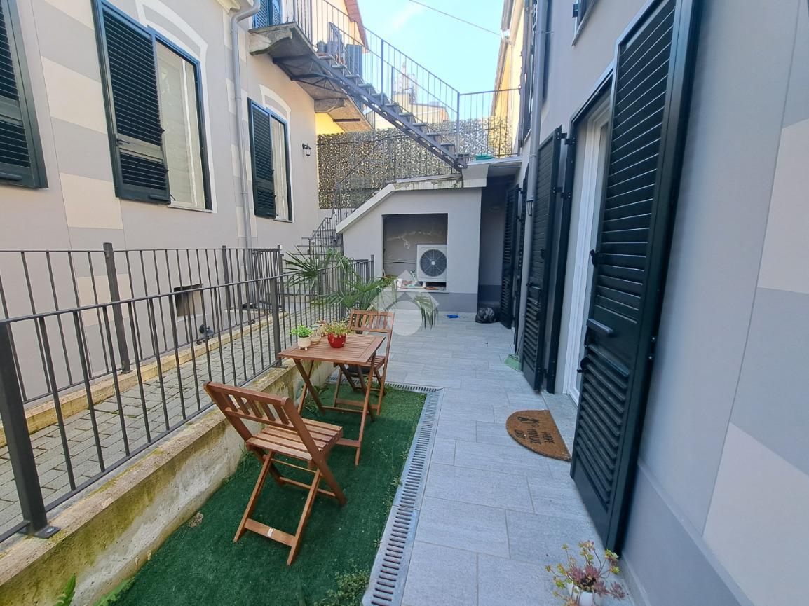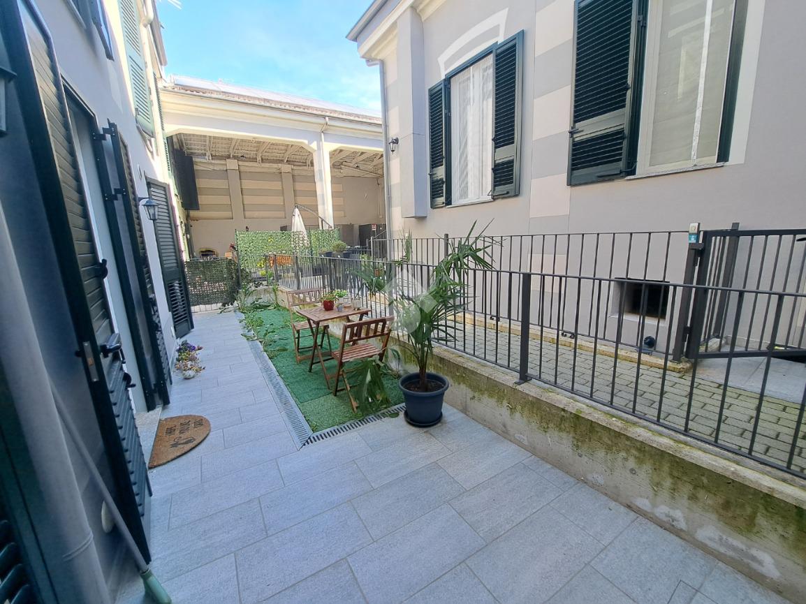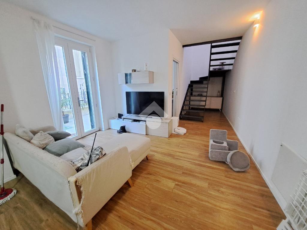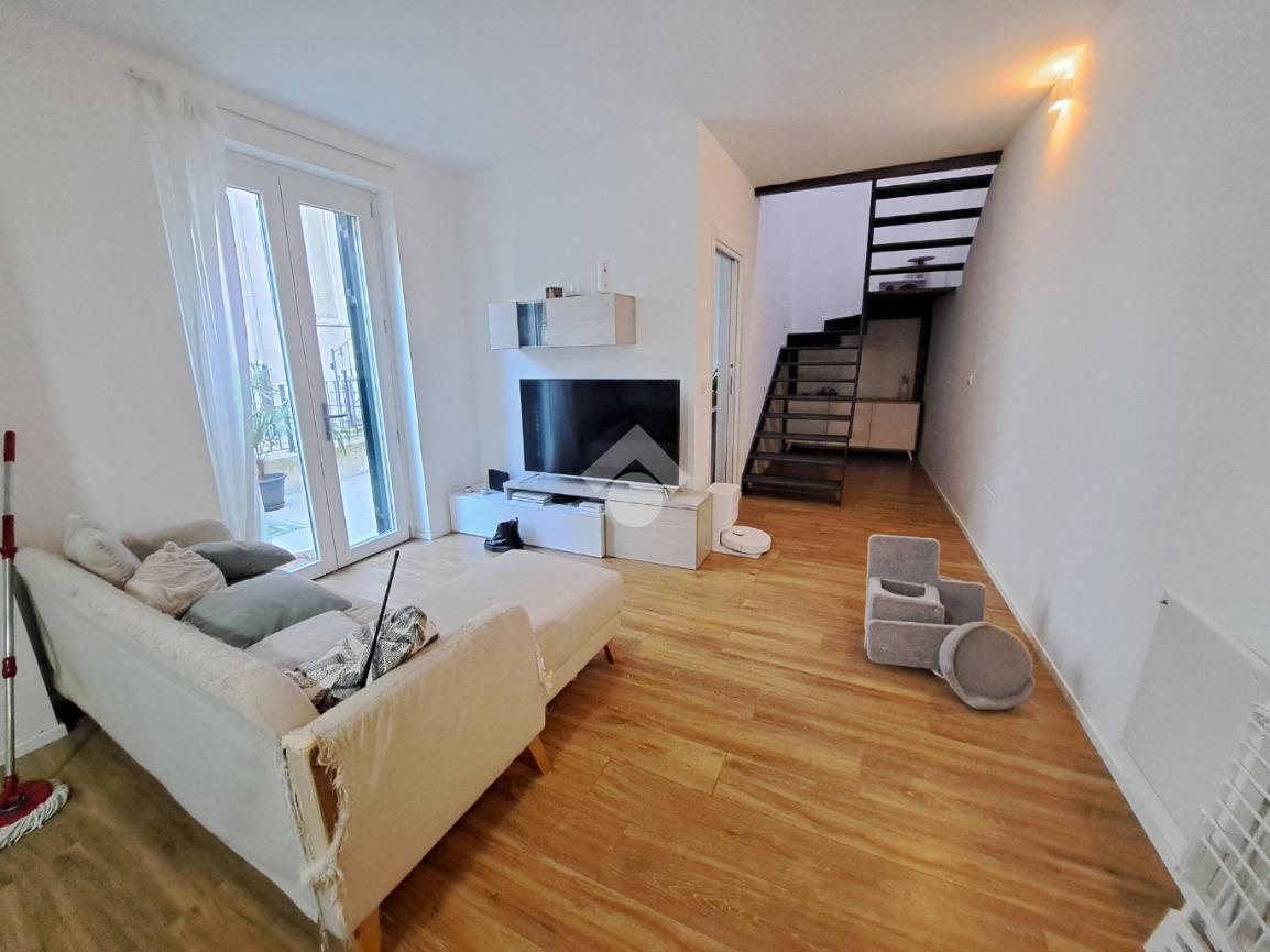 In centro paese, appartamento VUOTO situato in un complesso recentemente ristrutturato e che conta di sole quattro unita’ abitative. L’alloggio si sviluppa su due livelli ed ospita al piano terra la zona giorno composta da cucina e soggiorno ad ambiente unico. Invece, il piano primo accessibile mediante un’elegante scala in ferro, è costituito da due camere da letto, una delle quali con cabina armadio. E’ presente un bagno per piano con doccia e finestra. Il riscaldamento è autonomo a pavimento (caldo/freddo) mediante pannelli fotovoltaici, pompa di calore e caldaia a condensazione. Gli infissi sono in taglio termico e in PVC bianco e le persiane sono in alluminio. Completano la proprieta’ cortiletto ad uso esclusivo ed un posto auto coperto servito da colonnina per ricarica auto. L’accesso alla proprieta’ si ha mediante porta blindata situata in via Riva di Levante e mediante cancello elettrico che conduce all’area cortilizia di manovra. L’appartamento sara’ in classe energetica A4. LIBERO DAL 01/05/2026. Ci sono 160,00 euro al mese di spese che comprendono acqua, riscladamento e raffrescamento.