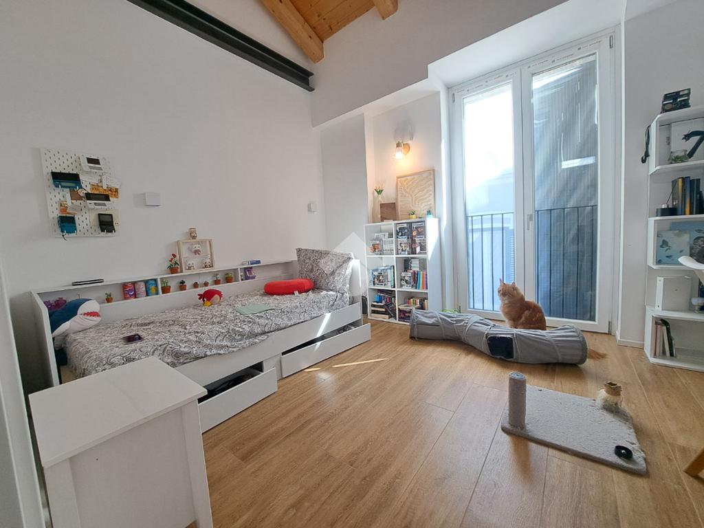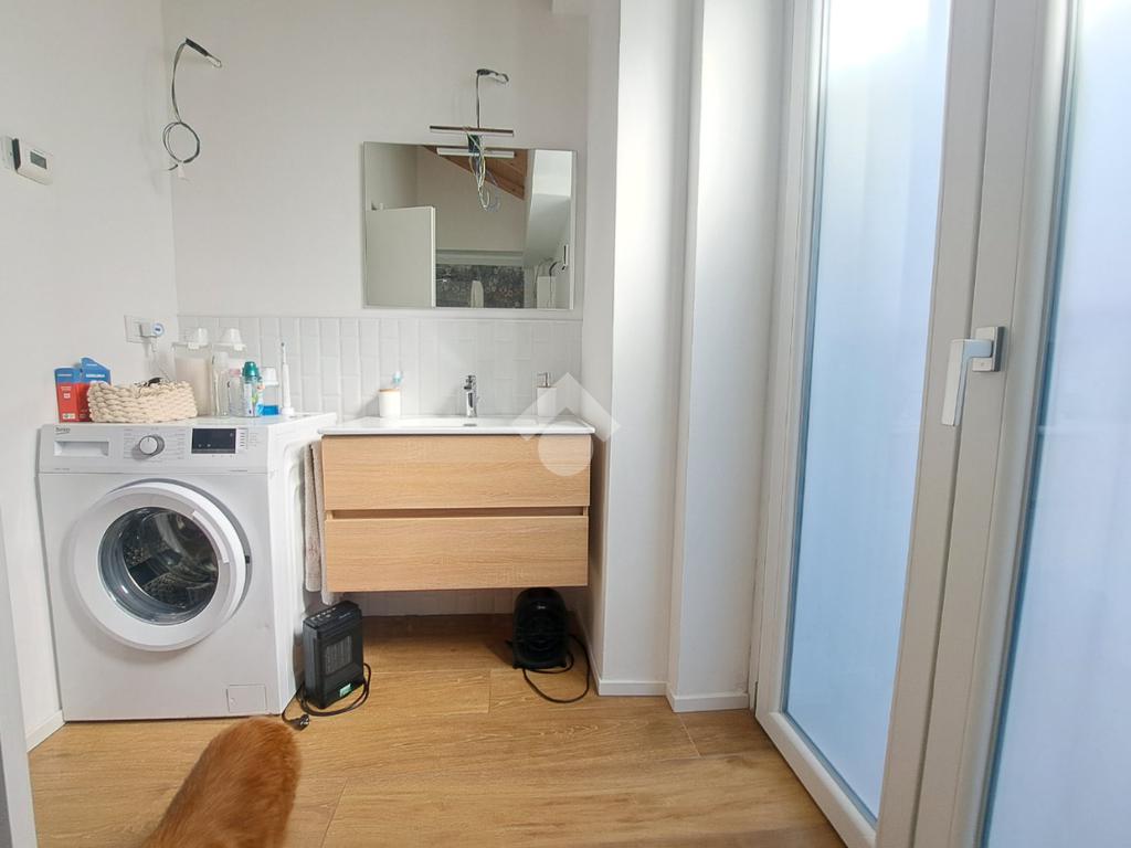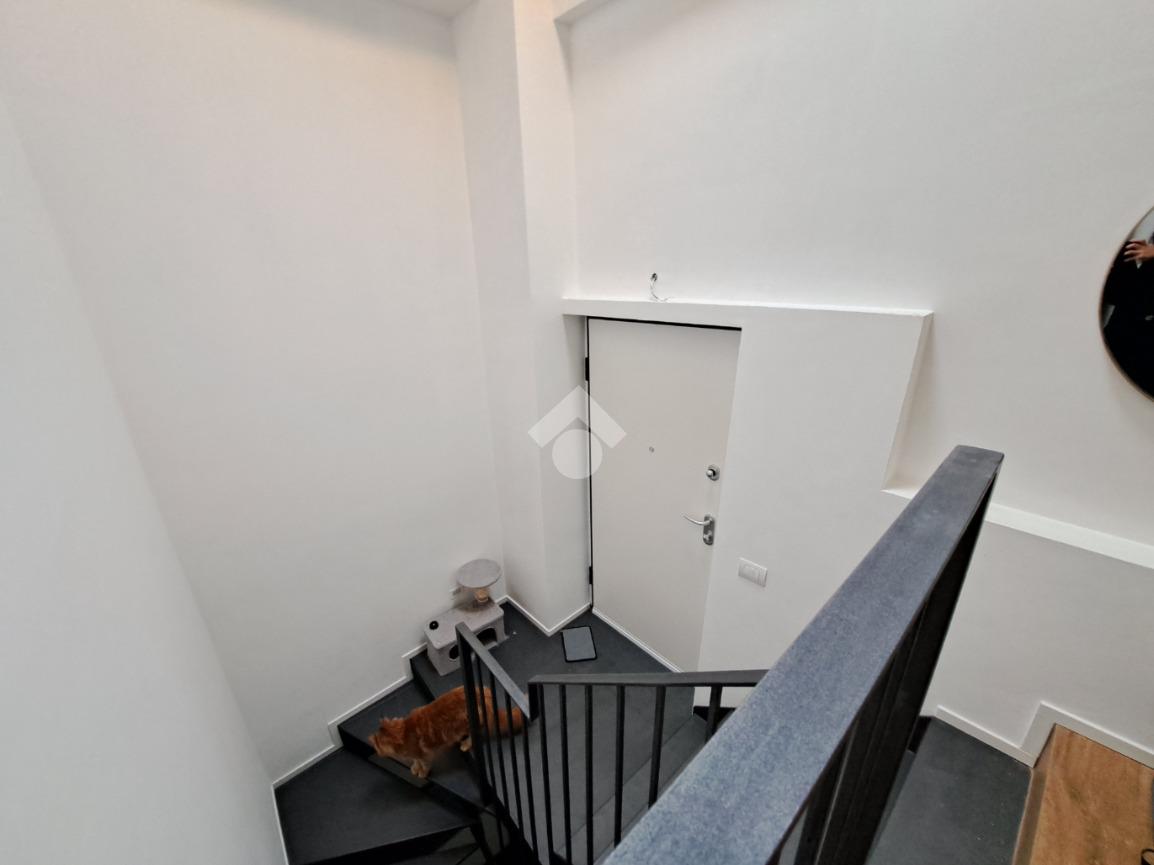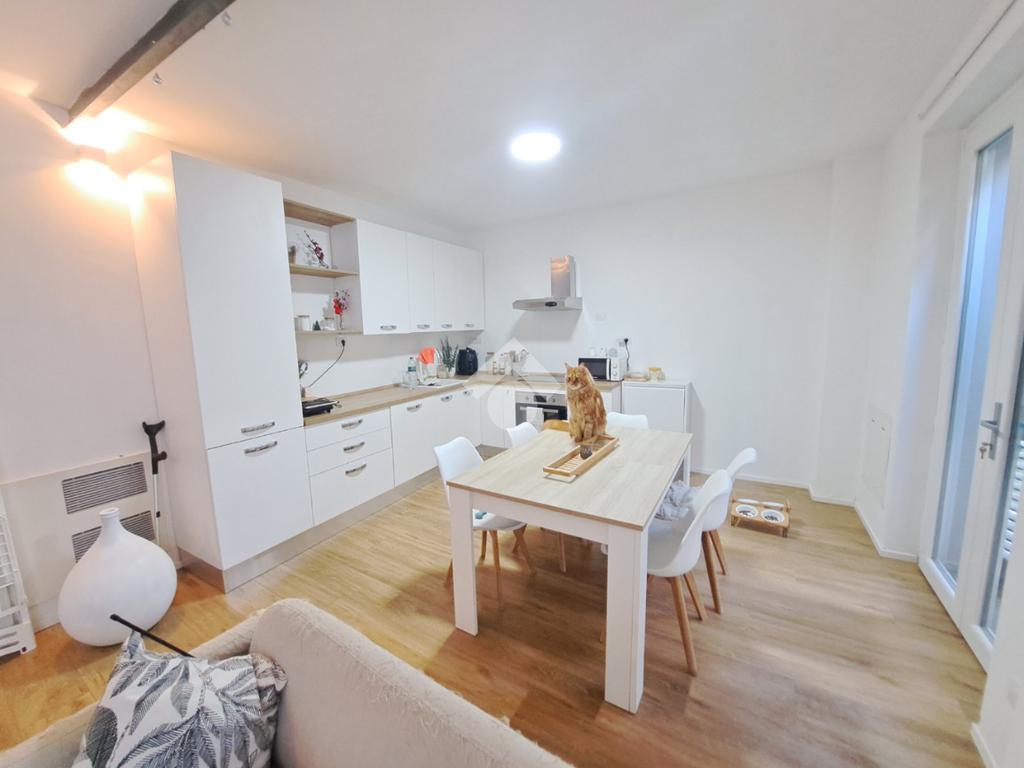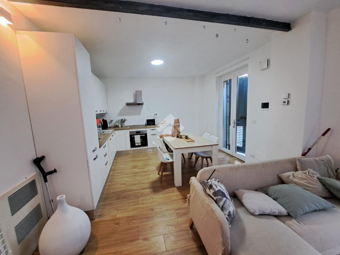 In centro paese, appartamento VUOTO situato in un complesso recentemente ristrutturato e che conta di sole quattro unita’ abitative. L’alloggio si sviluppa su due livelli ed ospita al piano terra la zona giorno composta da cucina e soggiorno ad ambiente unico. Invece, il piano primo accessibile mediante un’elegante scala in ferro, è costituito da due camere da letto, una delle quali con cabina armadio. E’ presente un bagno per piano con doccia e finestra. Il riscaldamento è autonomo a pavimento (caldo/freddo) mediante pannelli fotovoltaici, pompa di calore e caldaia a condensazione. Gli infissi sono in taglio termico e in PVC bianco e le persiane sono in alluminio. Completano la proprieta’ cortiletto ad uso esclusivo ed un posto auto coperto servito da colonnina per ricarica auto. L’accesso alla proprieta’ si ha mediante porta blindata situata in via Riva di Levante e mediante cancello elettrico che conduce all’area cortilizia di manovra. L’appartamento sara’ in classe energetica A4. LIBERO DAL 01/05/2026. Ci sono 160,00 euro al mese di spese che comprendono acqua, riscladamento e raffrescamento.