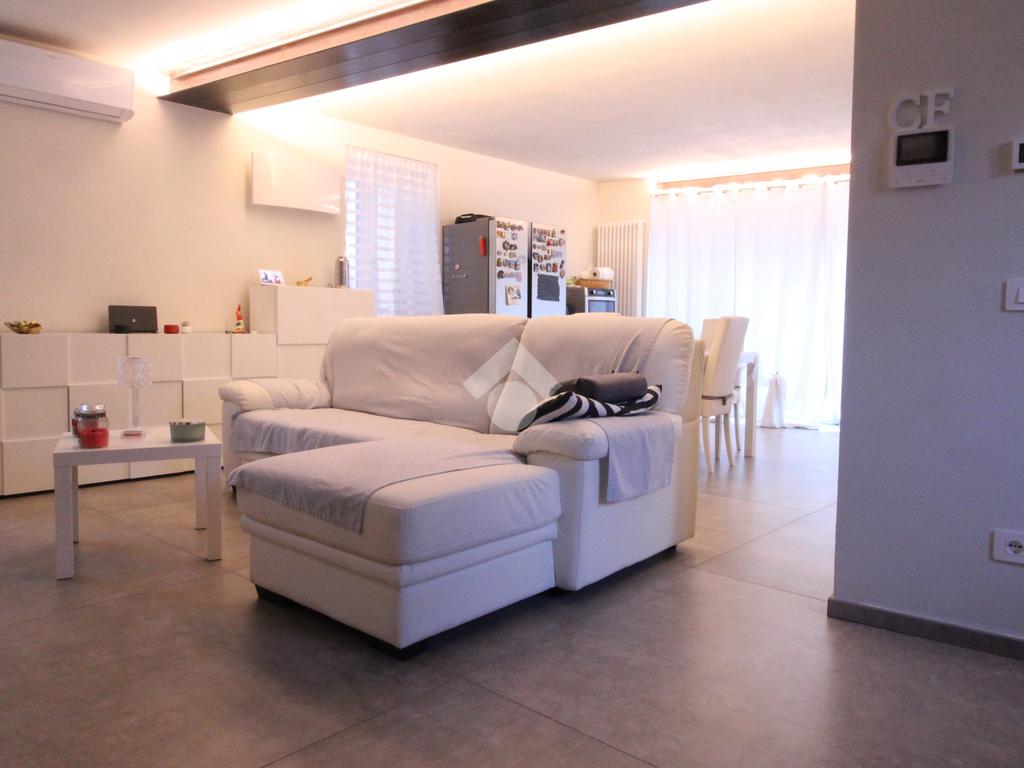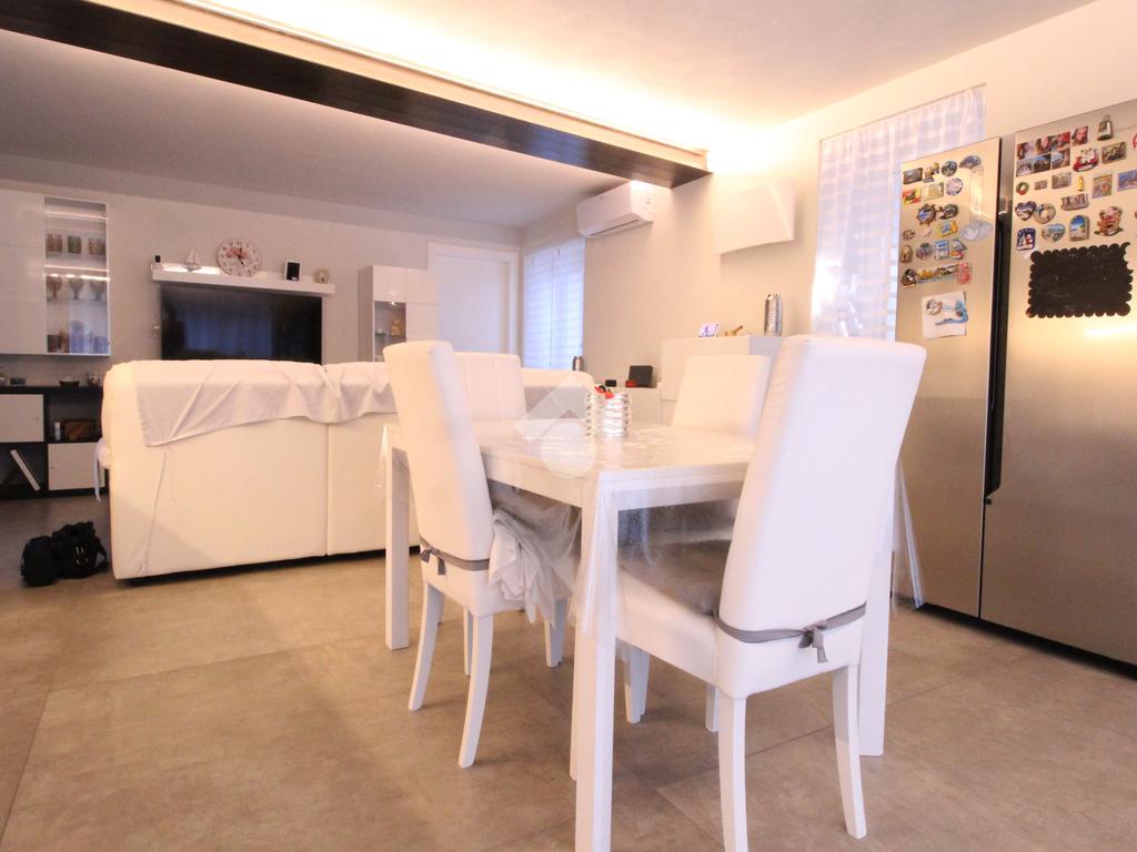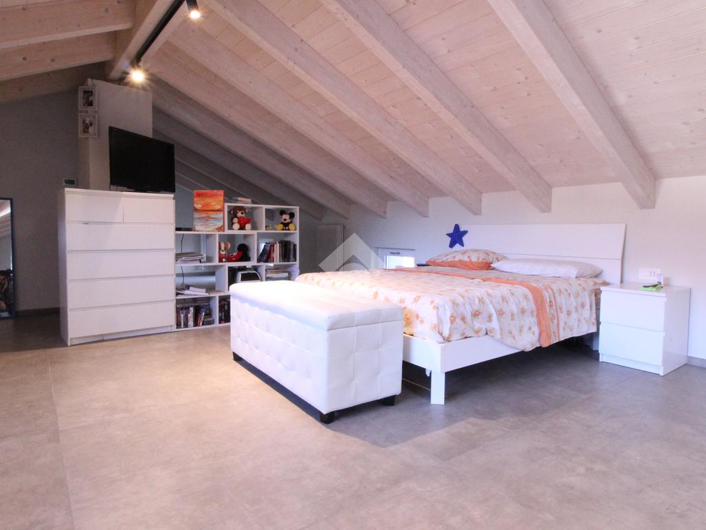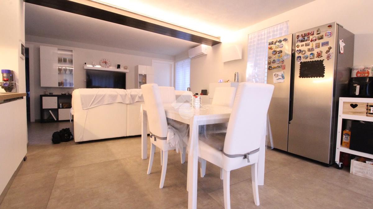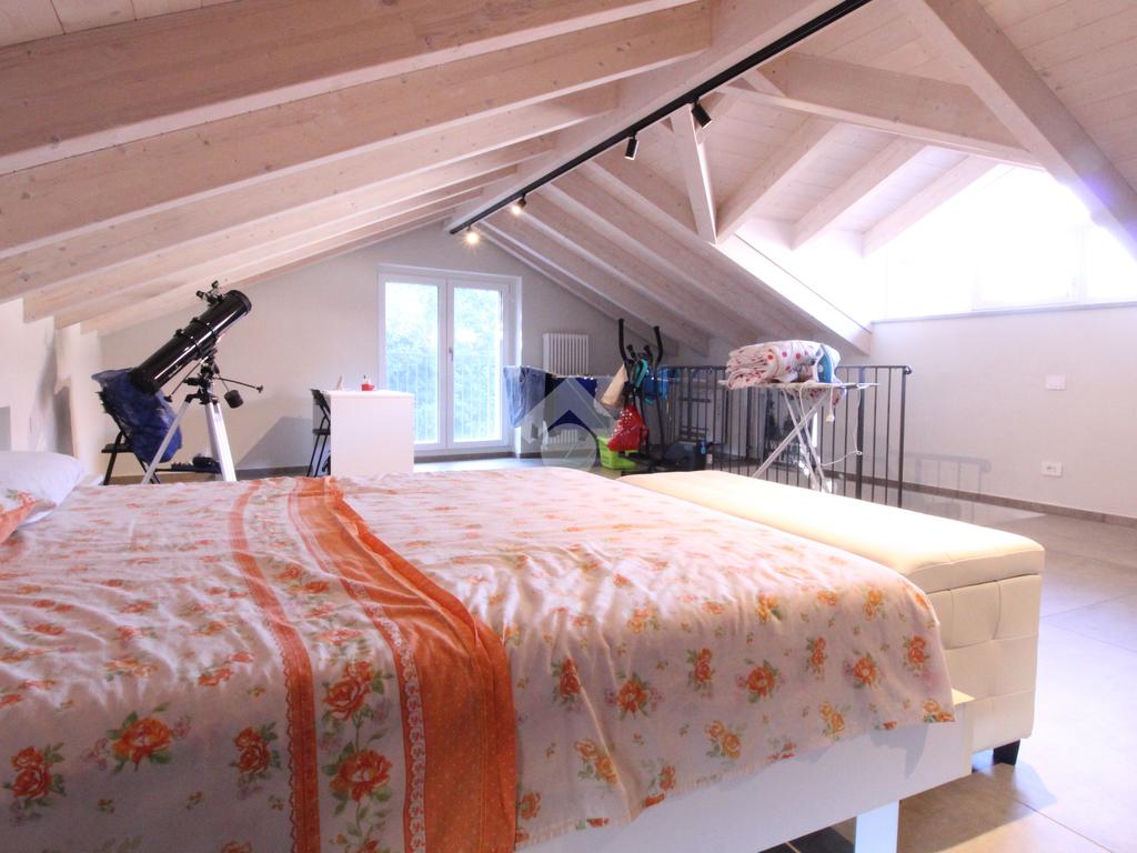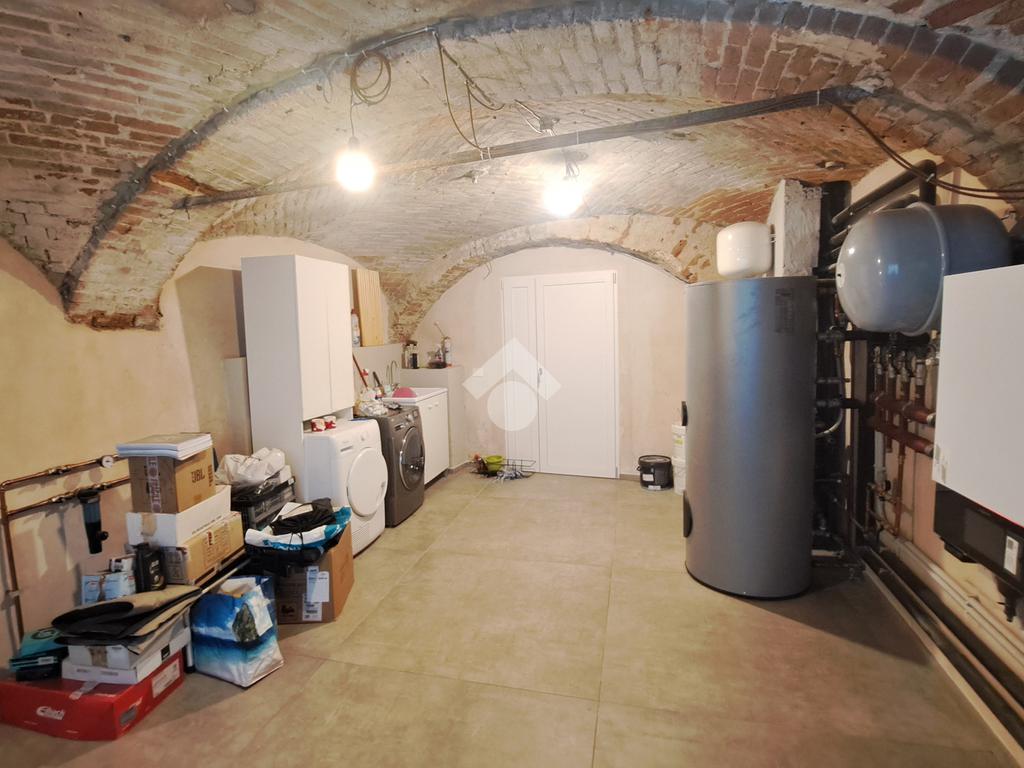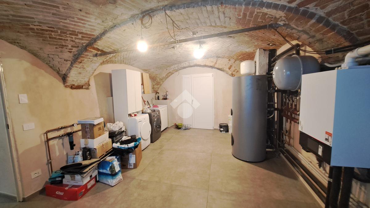 In centro paese, casa semindipendente ristrutturata completamente a nuovo nel 2023 e disposta su tre livelli. Il piano terra è costituito dal box auto doppio con basculante elettrico, dal vano tecnico e nel seminterrato è presente una cantina con volte in mattoni. Invece, il piano primo accessibile mediante una scala interna, è costituito da uno spazioso locale cucina/soggiorno impreziosito da un'elegante porta finestra con accesso sul balcone che si estende lungo la facciata della casa. Completano il piano una camera da letto ed un bagno completamente nuovo con doccia e portafinestra. Infine, il piano secondo è costituito da un locale sottotetto non abitabile di generosa metratura con travi a vista ed un ulteriore locale. Il riscaldamento è autonomo a metano con caldaia a condensazione Veissman con termosifoni ed è gestibile separatamente ai piani grazie a due termostati. Gli infissi sono dotati al piano terra di doppi vetri in PVC, mentre al piano primo e secondo sono tripli vetri in PVC. I lavori che sono stati fatti sulla casa sono: l' impianto fotovoltaico Huawei con potenza 4,1 Kw con batterie di accumulo da 10 Kw con postazione di ricarica auto da 7 Kw; l' impianto solare termico che scalda l'acqua calda sanitaria, l'impianto di condizionamento con 2 split uno in camera ed uno in sala; è stato fatto il cappotto sia al controsoffitto del box auto con EPS graffittato da 5 cm, sia della casa con lana di roccia da 14 cm. Al piano terra è stata fatta una doppia rasatura per renderlo più robusto, mentre al piano primo e secondo sono state fatte le rifiniture, la rasatura ed è stato dato il bianco. E' presente la predisposizione per l'allaccio alla rete LAN ai piani superiori. Sono stati installati due portoncini blindati ed è presente l'illuminazione a LED dimmerabili che permettono di gestire la loro intensità di luce. Sono state posizionate delle piastrelle molto grandi di dimensione 120x 120 cm da 1 cm in gres porcellanato che danno un tocco particolare alla casa. Infine, il tetto è stato rifatto completamente in lamellare ed isolato con EPS nero battentato da 15 cm.