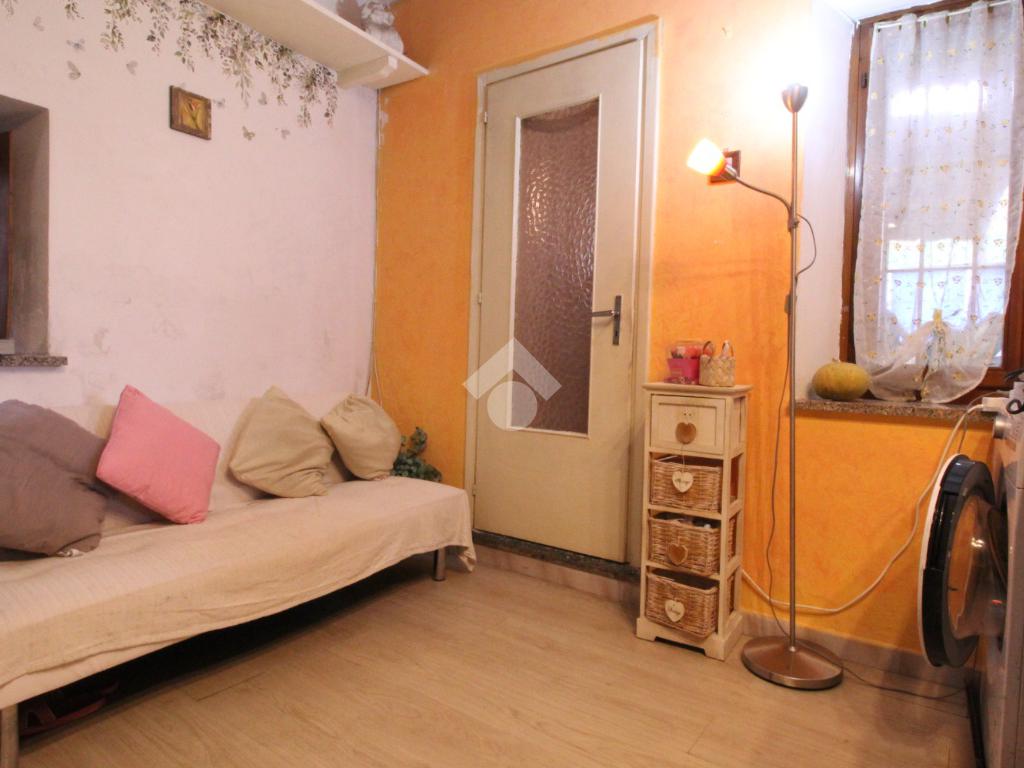 In centro paese, casa semindipendente disposta su due livelli da ristrutturare. Il piano terra ospita la zona giorno composta da cucina abitabile separata dal locale soggiorno impreziosito da un elegante camino in mattoni. Sono presenti due stufe a pellet. Completa il piano un bagno con finestra e doccia. Il piano primo, accessibile mediante una comoda scala a chiocciola, conduce alla zona notte. Quest'ultima conta di una camera da letto matrimoniale con accesso sul balcone che si estende lungo la facciata della casa ed una camera da letto singola. Esternamente, è presente un locale ripostiglio dal quale è possibile accedere al giardino privato.