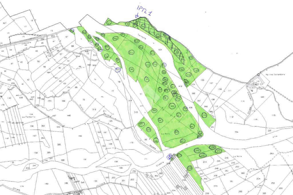 Immerso nelle campagne di Cerrione, vicino agli argini del torrente, ampio appezzamento di terreno agricolo di 233.287 mq circa in parte agricolo, ma prettamente boschivo. 7.862,94 mq circa attualmente secondo il piano regolatore sono adibiti ad uso per impianti privati per il tempo libero. In quest’area è possibile edificare piccole costruzioni in legno rimovibili di altezza non superiore a 2,50 m per uso deposito o ricovero. L’utilizzazione fondiaria non potrà essere superiore a 0,20 mq/mq. Una parte del lotto è raggiungibile comodamente con l’auto dalla strada interna del paese ed è possibile parcheggiare. Attualmente viene venduto in blocco, ma è possibile anche una vendita separata in due lotti distinti.