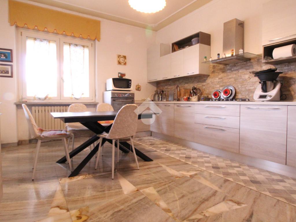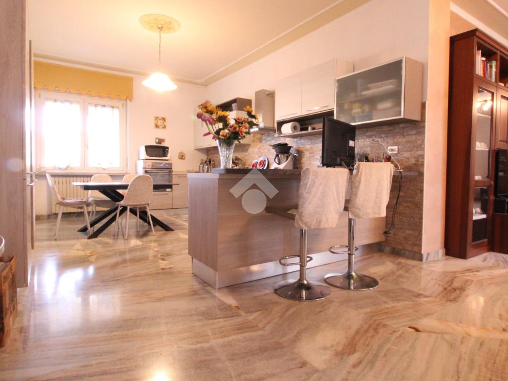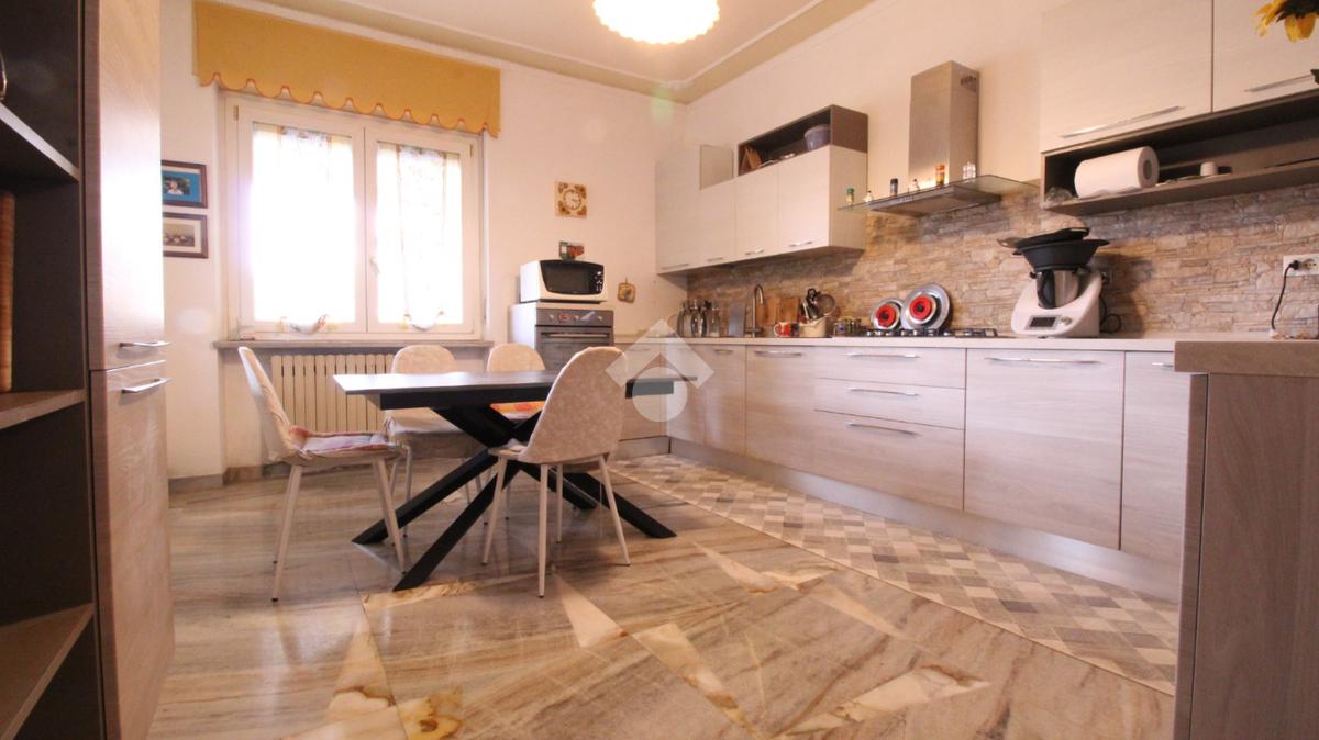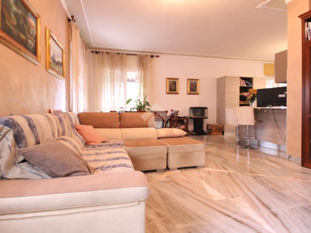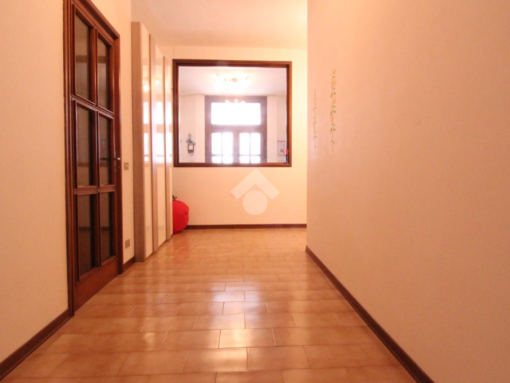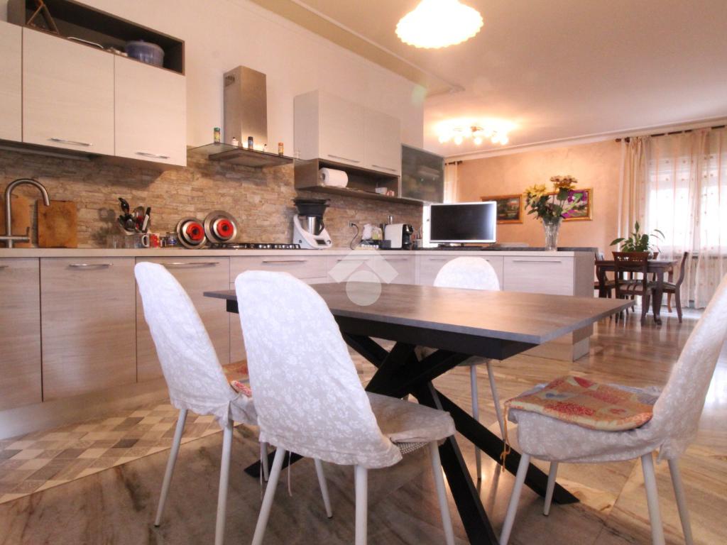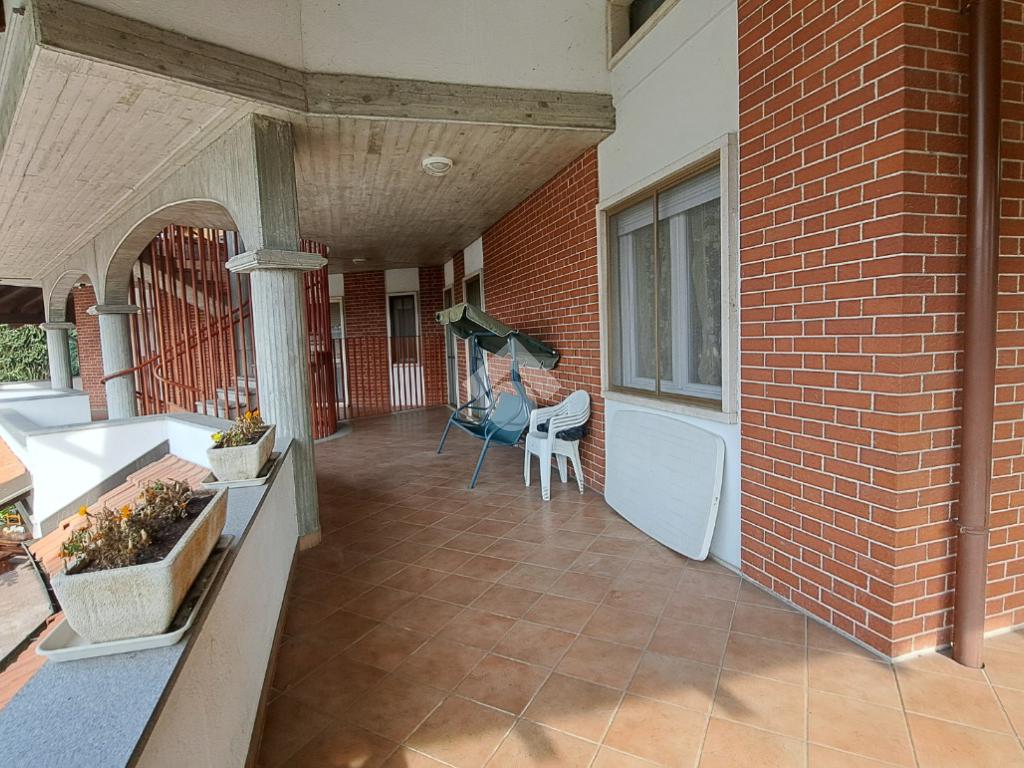 Appena fuori dal centro, appartamento di ampia metratura disposto su due livelli e con accesso mediante due scale, una che conduce all’ingresso dell’appartamento e l’altra al porticato. L’ingresso dà su un ingresso che fa da disimpegno a tutti i locali. La zona giorno è costituita da una spaziosa zona giorno composta da cucina e soggiorno ad ambiente unico con accesso sul porticato coperto che si estende lungo la facciata dell’appartamento trasformandosi in balcone. Invece, la zona notte conta di tre camere da letto due delle quali con affaccio sul porticato ed un bagno con vasca e finestra. Invece, il piano terra, accessibile mediante una comoda scala interna, è costituito da un locale lavanderia con piccola tavernetta/deposito, due bagni di servizio ed un locale cantina. Inoltre, è possibile raggiungere anche l’ampio box auto di 50 mq circa con basculante elettrico. Il riscaldamento è autonomo a metano mediante caldaia a condensazione sostituita nel 2018 e gli infissi sono in PVC e dotati di doppi vetri. L’impianto elettrico è stato ripassato nel 2009, sono state coibentate le pareti e dal lato opposto del condominio è presente il vespaio. Le spese condominiali si aggirano intorno ai 1200/1300 euro circa.