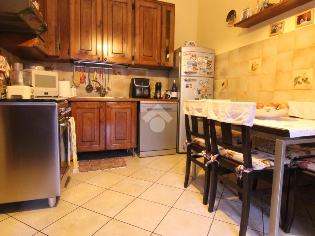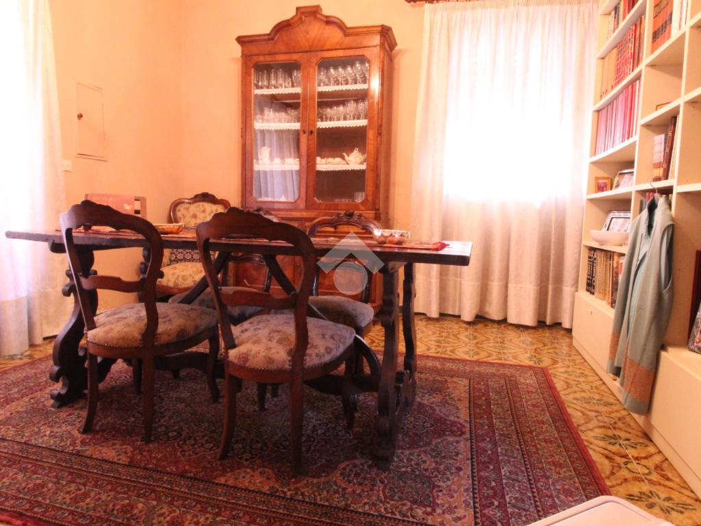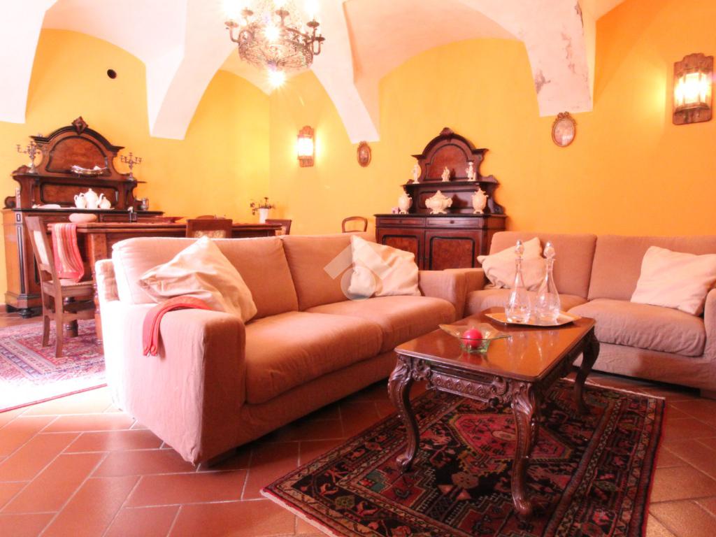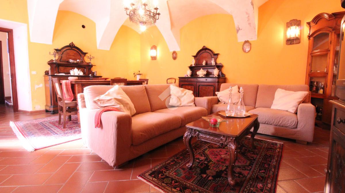 In centro paese, casa semindipendente disposta su livelli di ampia metratura. Il piano terra è costituito dalla zona giorno composta da cucina abitabile, separata da due locali soggiorno entrambi impreziositi da un elegante camino. Completa il piano una sala da pranzo ed un bagno con doccia e finestra. Invece, il piano primo accessibile mediante due scale interne conduce alla zona notte. Quest’ultima conta di cinque camere da letto, una delle quali con accesso su un balconcino. Inoltre, è presente un balcone che si estende lungo la facciata della casa. Completa il piano un bagno con vasca e finestra. Infine, il piano secondo è costituito da numerosi locali sottotetto. Inoltre, nel locale seminterrato è presente una cantina. Il riscaldamento è autonomo a metano e anche mediante due camini, uno dei quali ventilato e da una stufa a pellet. A corredo della proprietà vi sono una tettoia di ampia metratura di 78 mq circa, due box auto di 19 mq circa e 77 mq circa ed un ampio cortile privato. L’accesso alla proprietà si ha mediante accesso pedonale e carraio dalla piazza del Comune.