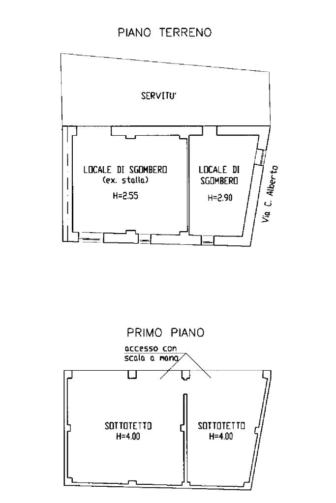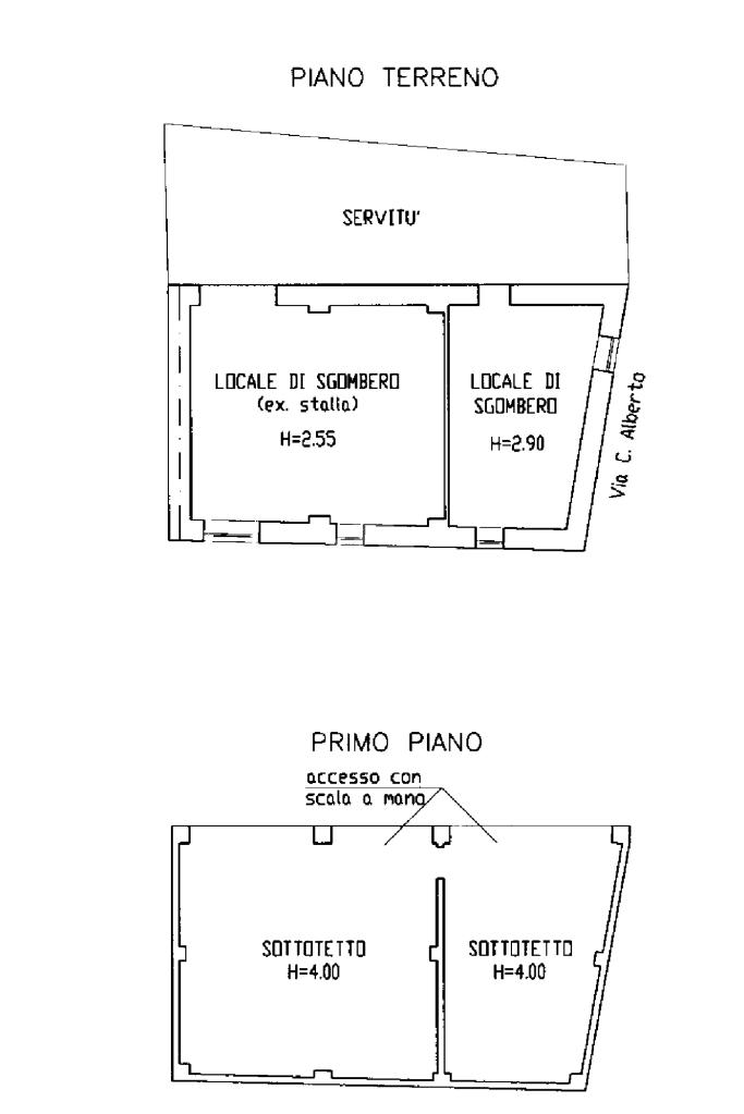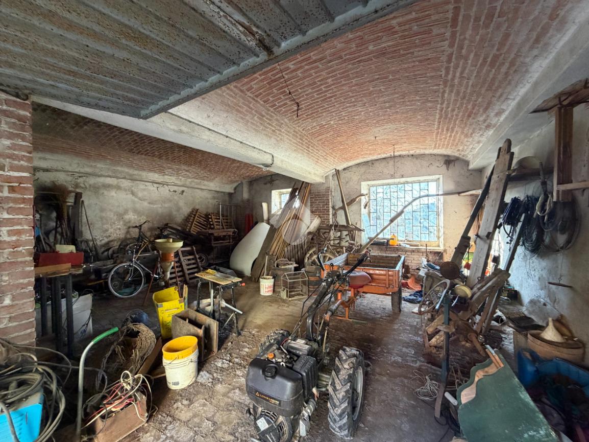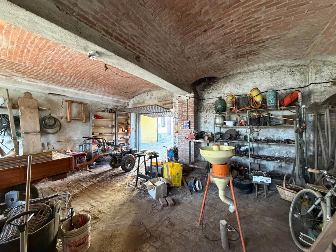 In centro paese, deposito di 91 mq circa disposto su due livelli. Il piano terra, è costituito da due locali di deposito, uno dei quali utilizzato come box auto doppio con magnifiche volte in mattoni. Invece, il piano primo è costituito da due locali sottotetto abitabili. A corredo della proprietà vi è un pezzo di giardino privato cintato attualmente utilizzato come orto situato sul retro del deposito di 171 mq circa. L’accesso a quest’ultimo si ha mediante un cancelletto pedonale. Il tetto del deposito si presenta in buone condizioni di manutenzione.