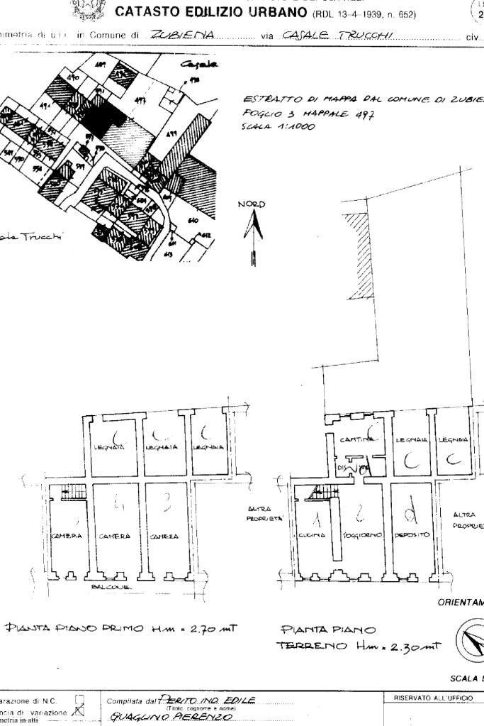 In frazione Trucchi, casa semindipendente disposta su due livelli. Attualmente, il piano terra ospita la zona giorno composta da cucina abitabile separata dal soggiorno. Completano il piano un bagno con doccia ed un locale cantina. Invece, il piano primo accessibile mediante una scala interna, conduce alla zona notte. Quest'ultima conta di tre camere da letto con accesso sul balcone che si estende lungo la facciata della casa. Inoltre, al piano terra è presente anche un locale di deposito. Il riscaldamento è dato dalle canne fumarie. A corredo della proprietà è presente un fienile disposto su due livelli ed un piccolo cortile privato con posto auto.
